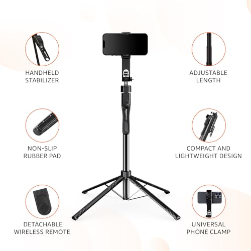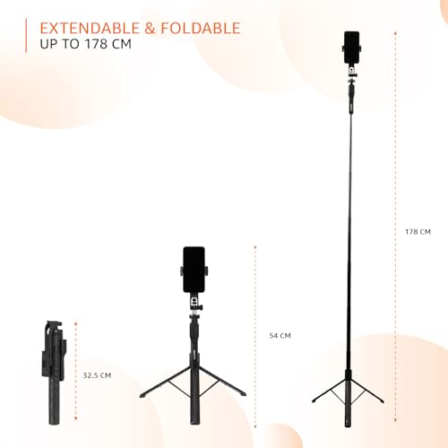 Extends up to 175cm, To capture photos and videos from a wide range of perspectives and distances.