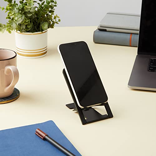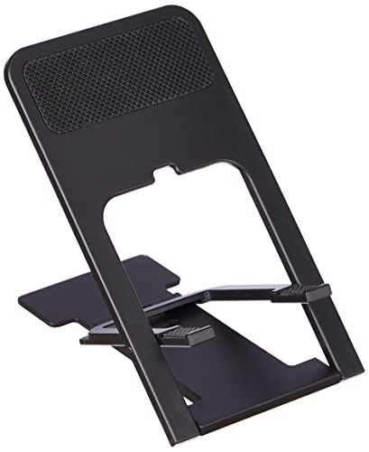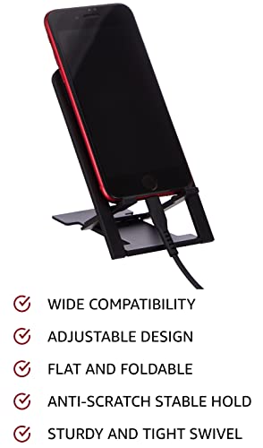 FLAT AND FOLDABLE: This plastic phone stand for desk uses a stable base and can be folded flat without any uneven bumps. Our foldable phone holder is less than 2cm thick when folded so you can easily carry it with you in your pocket, purse, backpack etc.