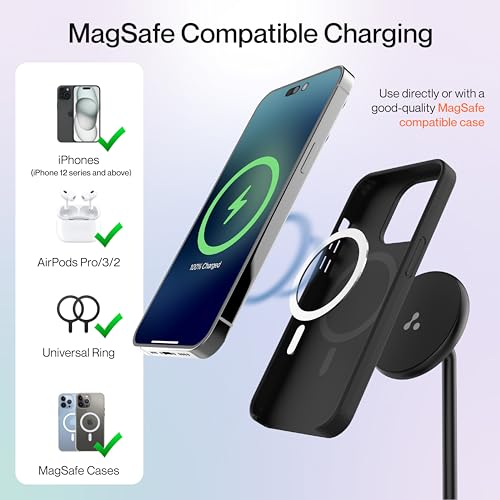 Dual Output: Delivers up to 15W to MagSafe-compatible devices and 7.5W to other Qi-enabled devices simultaneously, making it versatile for your charging needs.