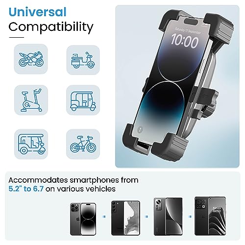 Versatility meets innovation with the MotoGrip’s universal compatibility. Crafted to accommodate smartphones ranging from 5.2″ to 6.7″ in size, the MotoGrip becomes the ultimate travel companion, seamlessly fitting a wide range of devices and making it an ideal choice for various vehicles and journeys.