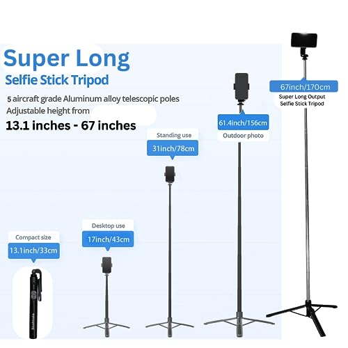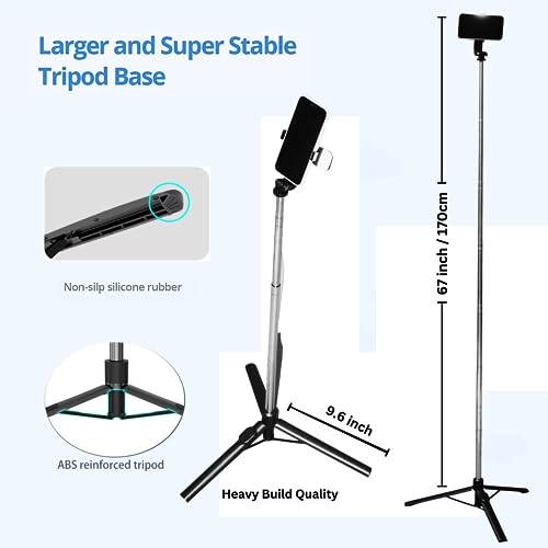 [Large ABS reinforced non-slip tripod&Super Stable]–The tripod is very stable when it is mounted with phone or camera standing on desktop or ground,because the tripod is very large and has non-slip silicone pads at the bottom of each foot,the bottom of the stick has additional ABS supports to connect each foot.