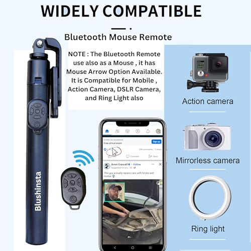 [Bluetooth selfie stick with wireless remote]–Equipped with bluetooth wireless detachable remote control, the remote control can be controlled all Mobile Phone as a Mouse Arrow within the range of 10m for mobile phone photos and videos.