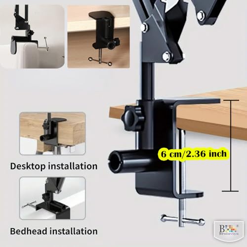 New 2 in 1 Base Clamp has 2 tube hole, it makes both vertical and horizontal use for the boom arm, mount your arm stand to table, bed post, sideboard, and headboard, Base clamp thickness 6 cm /2.36″ inch.
