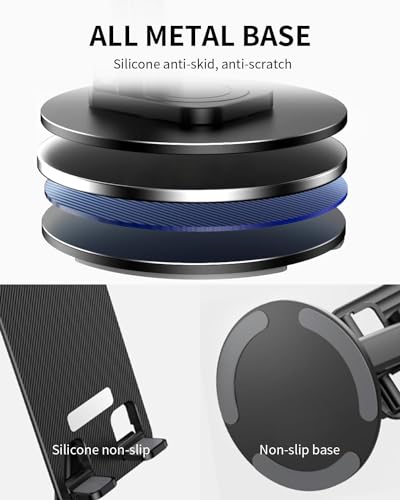 [Sturdy Metal Base + ABS Plate] Crafted with a sturdy weighted carbon metal base, this cell phone holder provides a sturdy and stable grip, ensuring your device is always stays securely in place while you work or enjoy multimedia content. The plastic phone holder is firmly designed. Plastic material minimizes the weight of the product. This helps users easily carry the product with them every day