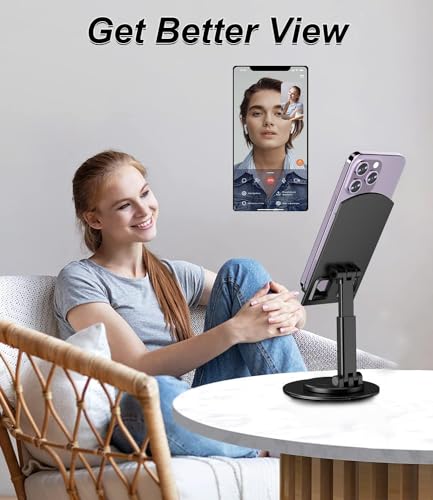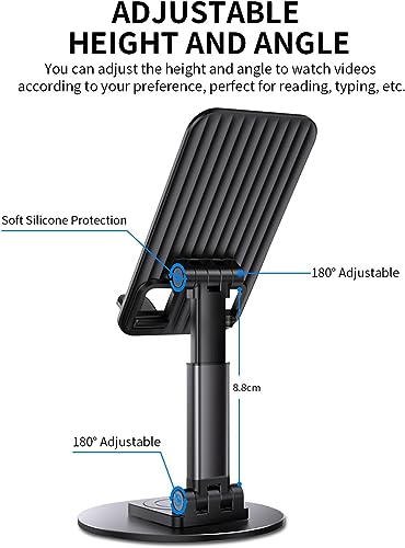 CASENED Portable Mobile Phone Stand for Desk, 360 Degree Rotatable Foldable, Height Adjustable Compatible with iPhone 15/14/13/12 Pro/XS Max/XR, Samsung S23/S22/S21/S20/S10 and Other Phone