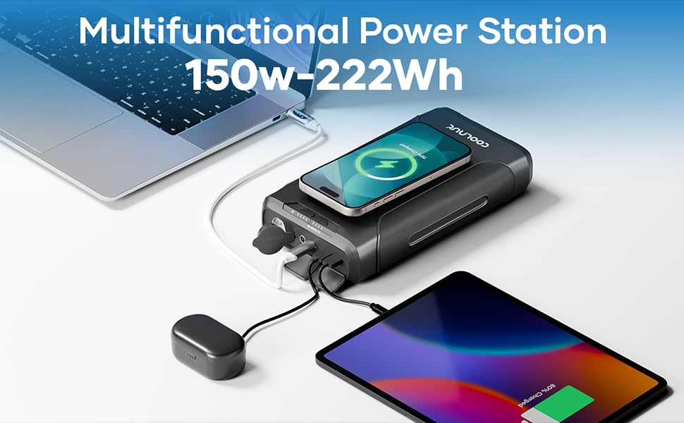 (What You Get) Coolnut 60000mAh power Station ๐Ÿ“ฆ, C to C cable ๐Ÿ”Œ, 45-watt PD charger,150W DC to AC Converter โšก. ๐Ÿ’ฐ, Coolnut’s industry-leading 5-year warranty, ๐Ÿ›ก๏ธ from the date of purchase, and lifetime technical support ๐Ÿ› ๏ธ.