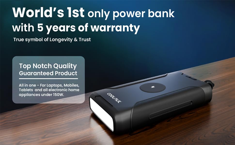 (Five Years Warranty) ๐Ÿ›ก๏ธ* Coolnut, an Indian company ๐Ÿ‡ฎ๐Ÿ‡ณ, stands out globally by offering a 5-year warranty on this power bank, a unique feature worldwide ๐ŸŒ. This impressive warranty is backed by advanced technology ๐Ÿ”ง, ensuring long-lasting performance and reliability โšก. Proudly made in India ๐Ÿ‡ฎ๐Ÿ‡ณ, Coolnut exemplifies high-quality Indian manufacturing, combining innovation with customer assurance ๐Ÿค