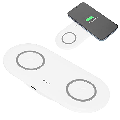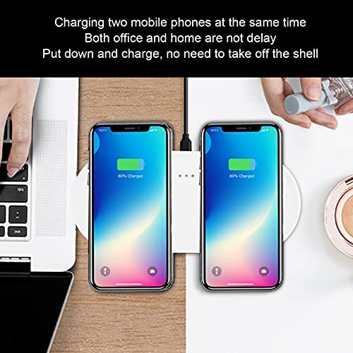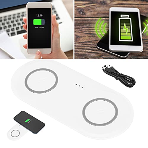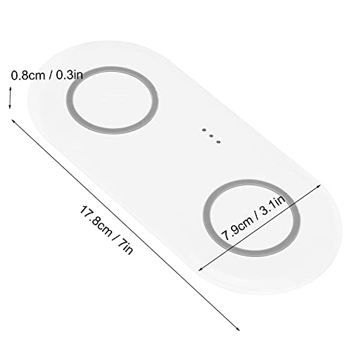 Feature:1. This wireless charger adopt quiet design, put on the tabletop and bedside quietly without disturbing2. Heavy intelligent protection mechanism, layered protection, safe and proper. Support over voltage protection, over current protection, over temperature protection, and electrostatic protection3. Recharge whenever you want, make your fragmented time more efficient, and realize the freedom of battery life for a whole day4. Charging two mobile phones at the same time, both office and home are not delay. Put down and charge, no need to take off the shell5. This charging pad is lightweight, portable, essential for business trips and travelSpecification:​Item Type: Dual Mobile Phone Wireless ChargerMaterial: ABS + siliconeFeatures: Ultra-thin design, light weight, suitable for home and office use, convenient to carry when travelingSize(LxWxH): Approx. 17.8 x 7.9 x 0.8cm / 7 x 3.1 x 0.3in(manual measurement, there may be slight errors)Applicable Mobile Phone Type: Mobile phone suitable for wireless chargingInterface: Type CSoft Indicator Light: Green Light: Normal chargingRed Light Flashes: Foreign body alarmSteady Green Light: For iOS is fully chargedOff: For is fully charged Package List:1 x Wireless Charger1 x USB Cable1 x User Manual