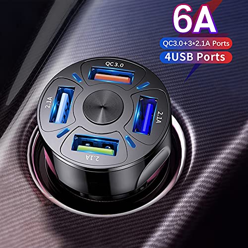 4 Port Car Charger Adapter : Dyazo Car Charger Is Able To Charge Up To 4 Devices Together Saves Time . One Port Charges At Speed Qc 3.0 (Supports Quick Charge 3.0 Devices Fast Charging ) And Other Ports Charge @ 2.1 Amp
