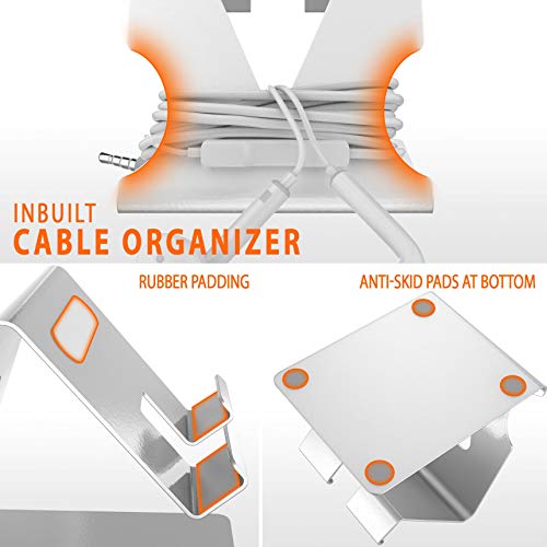 KEEPS YOUR PHONE SCRATCH-FREE AND PROTECTS FROM ANY SPILLS, KEEPING IT DAMAGE FREE PERFECT VIEWING ANGLE: This phone holder offers a perfect viewing angle for Face-timing, watching videos, checking out recipes or doing yoga. You can place it on your desk, nightstand, floor, mat, bench-top at home or in office and enjoy doing hands-free work. BROAD COMPATIBILITY: This Stand is compatible with almost all Phones and Tablets upto 7 inches. ELIMINATE CLUTTER FROM THE DESK: This smart phone holder comes with inbuilt cable/ Earphone organizer, which helps in cutting the clutter off your desk/table. ANTI-SKID RUBBER PADS AT THE BOTTOM: Four nonslip foam pads which provide wobble-free stability and make sure that the stand stays in place. MULTI-PURPOSE USAGE: Can be used at any place. Easy to carry anywhere. Lightweight and Portable.