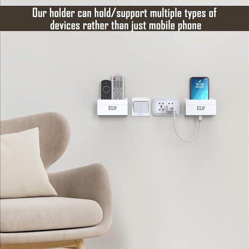 Convenient Use of ELV Phone Holder Wall Mount While Charging : Wall Mount phone holder can give your phone a safe dock while charging. Built-in non-slip pad and charging cable organizing can avoid your phone falling off and tangled mess. It is the perfect storage solution for your smartphone when it is charging. Features: Easy installation, Not harmful to electronics, Convenience to put the devices when charging. Compatibility : Compatible with iPhone 12 Pro Max, iPhone 12 Pro, iPhone 12, iPhone 12 mini, iPhone 11 Pro, iPhone 11 Pro Max, iPhone 11, iPhone XS Max, iPhone XR, iPhone X, iPhone 8, 8 Plus, iPhone 7, 6S, 5, Samsung Galaxy S21 ULTRA, S21, S20, S10+, S10, S9, S9+, S8, S8 Plus, S7, S6, S6 Edge, S5, S4, S3, Note 3, Note 4 and more. How to Use : This wall phone holder is designed to be attached to the wall. Do please make sure the wall you stick is dry and clean and with smooth surface. After stick this product to your wall, please wait for 24 hours before using to make sure it sticks firmly. Please be kindly noted that it’s okay to get it off the wall, but the holder is not reusable any more. Important Notes The Plugs and cables just for show NOT INCLUDED. Intended only for use on smooth, non-textured surfaces.