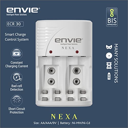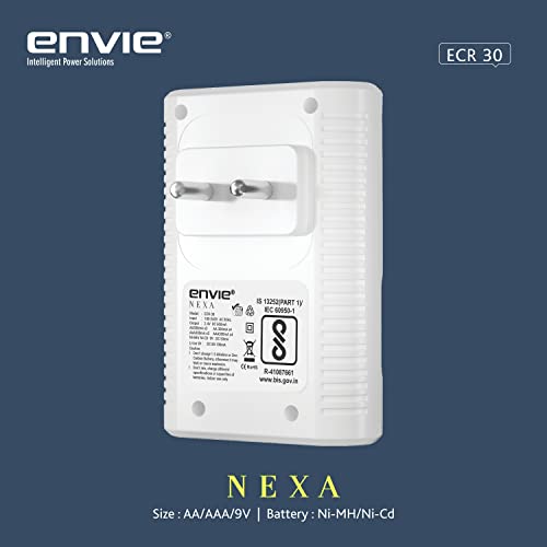 Envie Charger NEXA ECR 30 Smart Charge Control Charger System for AA & AAA & 9V Rechargeable Batteries. Protection against Overheat and Over current.