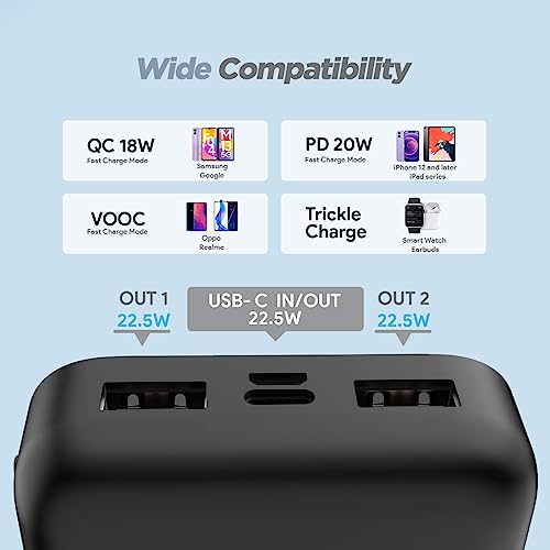 ✅ [Compatibility] This is a universal Powerbank which can charger all the devices like mobile phones, Tablets, Headphones / Neckbands, Smartwatches and many more, supports all new models Smartphones like iPhone 14, iPhone 13, iPhone 12, iPhone 11, Samsung Galaxy S23 Samsung Galaxy S22, Samsung Galaxy S21, Samsung Galaxy Z Fold 3/4, Samsung Galaxy Z Fold 4, Google Pixel 7, Google Pixel 6, Oneplus 11, Oneplus 10, Vivo V21, Vivo V25, Redmi Note 12, Realme 11 Pro and many more