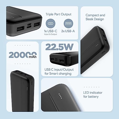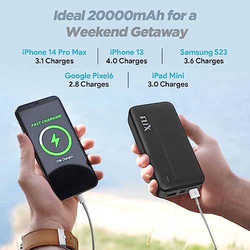 ✅ [High-Capacity Battery] The 20,000mAh capacity provides ample power to keep your devices charged throughout the day. It offers multiple recharges for your smartphone iPhone Pro Max 3 charges, iPhone 13 4.4 charges, Samsung S23 3.4 charges, Google pixel 6 2.8 charges, ipad Mini 3 charges or other USB-powered devices, ensuring you stay connected whenever and wherever you need it