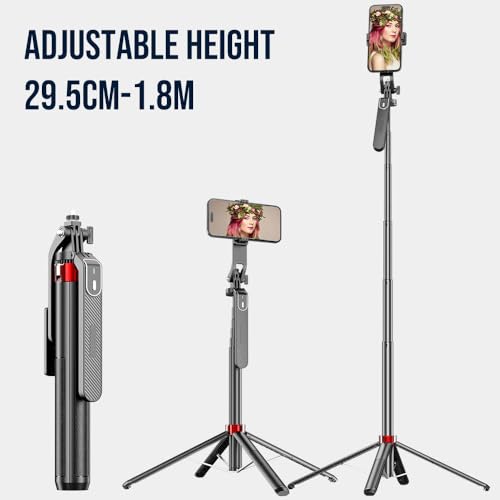 【Portable and Compact Design】 Compact design, can be carried around without taking up much space. Our selfie stick easily extends from 18″/460mm to 71″/1800mm, longer than similar tripods on the market. No need to twist or lock, it can be extended at a specific height to meet different shooting needs.