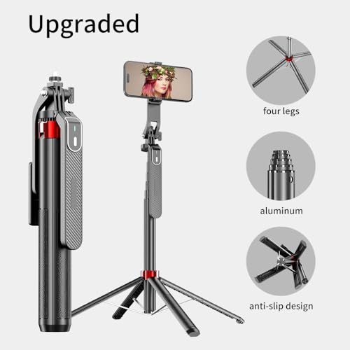 Introducing the GadgetsWear Selfie Stick with Tripod Stand 360 degree – the ultimate all-in-one solution for capturing the perfect shot! Whether you’re an iPhone enthusiast, a MI fan, or in search of a selfie stick with light, this versatile selfie stick for mobile phone is your go-to choice. Enhance your photography game with our selfie stick for iPhone, compatible with iPhone 13 and iPhone 14 Pro Max, providing you with unbeatable stability thanks to the built-in selfie stick with tripod stand featuring a 360-degree rotating design. Plus, the Bluetooth Selfie Stick with Balance Handle guarantees shake-free shots, and it’s rechargeable for your convenience. This incredible mobile selfie stick also doubles as a tripod selfie stick, making it perfect for setting up your camera, ring light, or smartphone for those professional-grade shots. And with the 1/4 Screw compatibility, it can even hold your GoPro, providing you with limitless possibilities. Designed for maximum versatility, the selfie stick with tripod stand light also features a portable selfie stick tripod with an integrated LED light, perfect for capturing those flawless photos in any lighting condition. The included Bluetooth remote ensures you have full control over your shots, making this the best selfie stick for iPhone and other smartphones alike. Get ready to capture stunning, shake-free memories with this long selfie stick with tripod stand, whether you’re using it for Insta 360 adventures, Digitek precision shots, or simply the best selfie stick for your everyday needs. Upgrade your photography game and grab the GadgetsWear Selfie Stick with Tripod Stand 360 degree now – it’s the ultimate selfie stick for mobile phone with light and more, all under 200 bucks!