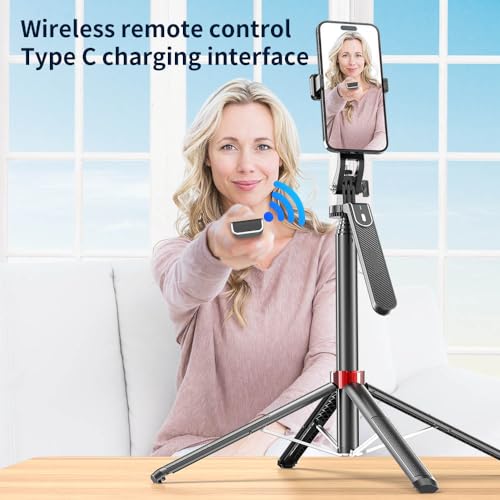 【Rechargeable Remote Shutter】Free your hands and enjoy taking photos remotely with the selfie stick tripod with remote control. It can maintain a stable connection at a distance of up to 33 feet/10 meters and is compatible with most smartphones such as Android and iPhone. It also supports Type-C charging, eliminating the need to replace batteries.