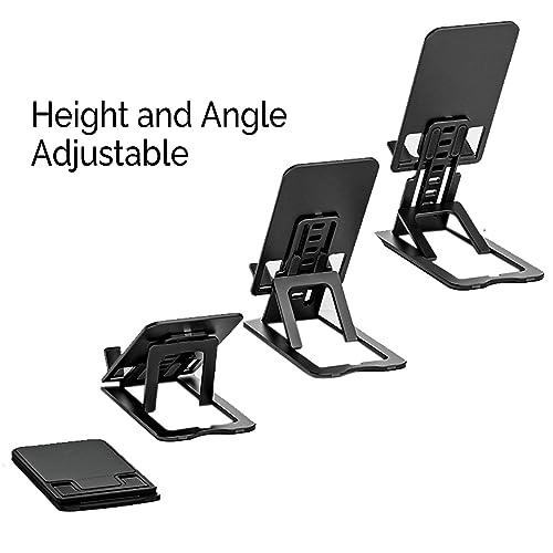 This sturdy stand keeps your phone at eye level whether you’re watching videos or making calls hands-free. Made of durable Plastic , it holds phones weighing up to 2 kg securely in place without wobbling. The non-slip rubber pads on the legs and phone rest protect devices from scratches and slipping. Adjustable for portrait or landscape viewing, this stand fits most phones with screens up to 7 inches diagonally. Its foldable design makes it compact to toss in your bag and take on the go. Lightweight yet stable, this cell phone stand delivers hands-free convenience for streaming, video chatting, navigating, and more.