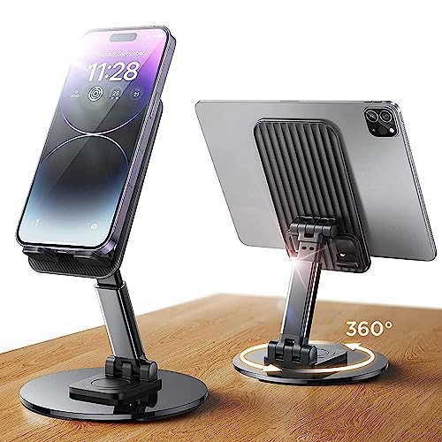 Stable and Durable: The base of this phone holder is made of carbon steel, making it more stable and durable than other phone holders. The bottom ring of non-slip pads further enhances stability and prevents sliding or movement. This holder supports 360° rotation, allowing you to share your screen content with friends.