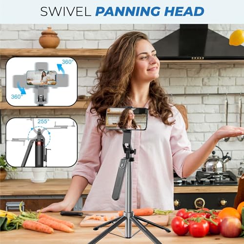 [Multi-Feature Design] This Bluetooth Selfie Stick fits phones 60mm-100mm wide (not compatible with foldable phones). The phone holder rotates 360° and the bracket 270°, essential for photographers to capture every angle and shoot wonderful moments