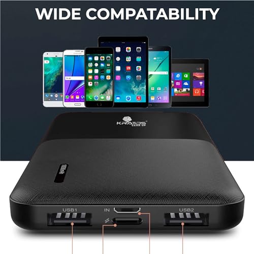 [ Power Packed Slim Power Bank ] : Power Packed Lithium Polymer 10000 mAh battery allows you to efficently charge your devices multiple times. Suitable for Smartphones, Tablets, Earbuds, Headphones, Smartwatch and other Electronic devices