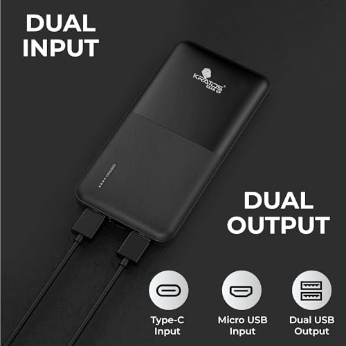 [ Dual Input and Dual Output ]:Easily charge your 1000 mAh power bank via Micro USB (Type B) or Type C ports. Power up your devices with 2 USB Type A outputs. LED lights indicates charging status & available power,ensuring precise charging experience