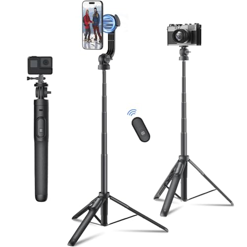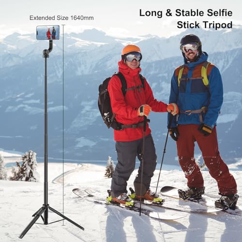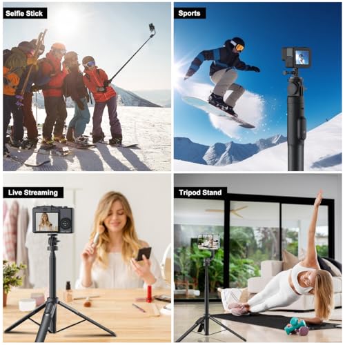 [Multi-functional Long Selfie Stick]– The selfie stick is 64-inch in length, 12.2-inch in length when folded, easy to carry and extend to the desired height when in use, and this selfie stick can fit most cell phones, action/mirrorless cameras, ring lights. It can be well used for vlogging, live streaming, sports and traveling.
