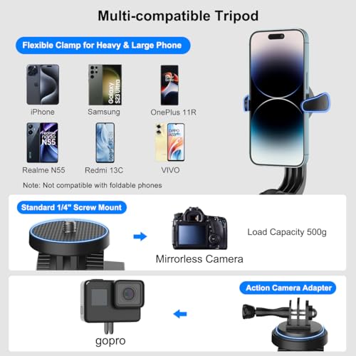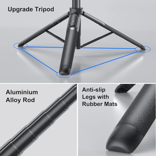 [Reinforced Tripod Stand]– This selfie stick tripod is made of aluminum alloy and ABS, sturdy and durable, and the tripod has a reinforced design, which can stably fit mirrorless cameras and heavy phones, which can be well used outdoors and indoors.
