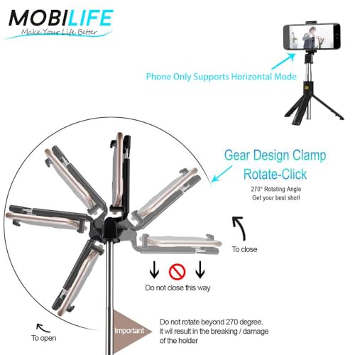 【HOW DOES IT FIT VARIOUS OCCASIONS?】Extendable length from 10 inches to 23.6 inches so you can choose your desired length.Compact pocket size design, which is easy to carry. With 270°rotation, you simply twist the cradle head or phone holder to take photos, video call or live broadcasting , to meet your different needs, or situation