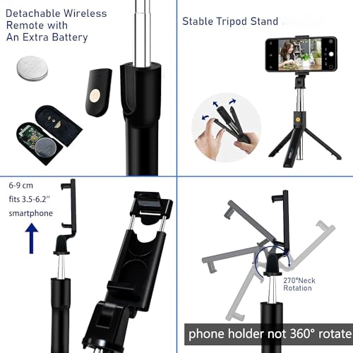 【Widely Compatible & Perfect Match 】The Selfie Stick is suitable for Most Smart Phone in Market, iPhone /Mi/Vivo/Oppo/Oneplus/Samsung/Realme etc. No Need to Worry About Incompatibility Issues. Fits 3.5-6.2” screen devices like iOS & Android.