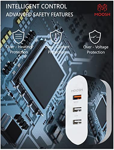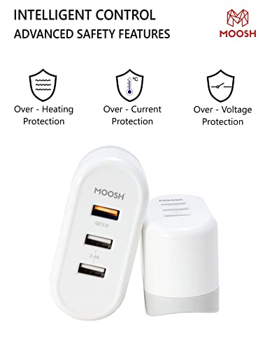 EASY TO USE = Blue LED light indicates charging function, providing ease of operations & hassle free charging. Input: AC100-240V Max Output Power: 30W Output QC3.0:5V2.5A, 9V2A, 12V1.5A Output:5V 2.4A (Max). 90 Degree Foldable Design, provide Hassel Free carrying