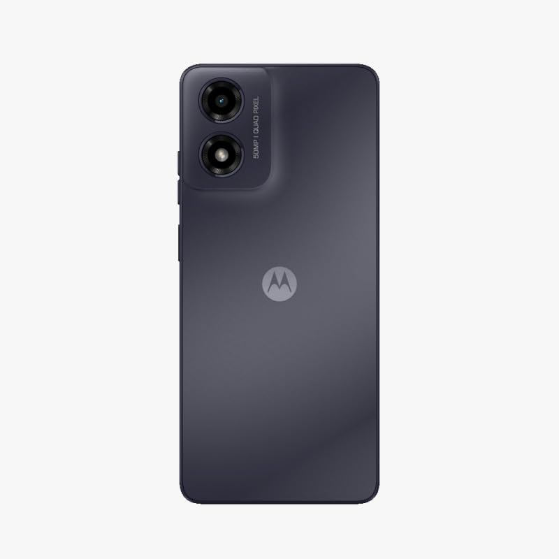 The moto g04s boasts a 50 MP main camera for sharp, instantly focused photos with HDR, Night Vision, and Portrait mode, plus a 5 MP front camera for social media-ready selfies. Its sleek, lightweight design features a premium matte finish, weighing just 178 g and measuring 7.99 mm thin. The 16.66 cm (6.6), 90 Hz punch-hole display, protected by Gorilla Glass 3, offers immersive viewing with High Brightness and Night Light modes. Powered by the UNISOC T606 chipset, 4 GB RAM, and 64 GB storage, it ensures seamless performance and multitasking, with up to 8GB RAM Boost. The 5000 mAh battery provides extensive usage with rapid charging. Running on Android 14, it enhances privacy and personalisation. Dolby Atmos delivers immersive audio. The triple card slot supports dual SIMs and up to 1 TB microSD expansion.