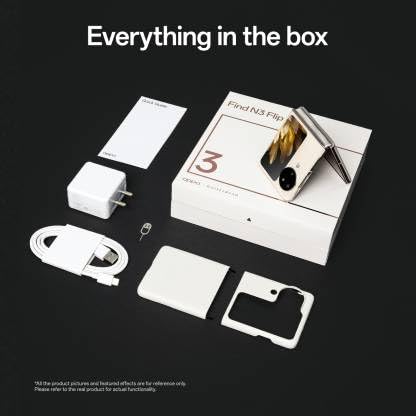 General In The Box Handset, Cable, Charger, Sim Ejector Pin, Protective Case, User Manual, Tips, and VIP Card Model Number CPH2519 Model Name Find N3 Flip Color Cream Gold Browse Type Smartphones SIM Type Dual Sim Hybrid Sim Slot No Touchscreen Yes OTG Compatible Yes Quick Charging Yes Sound Enhancements Dolby Atmos, Integrated Audio Decoder Chip, 1115 and 1012 Ultra Linear Speaker SAR Value Head: <2.0 W/kg, Body: <2.0 W/kg Display Features Display Size 17.27 cm (6.8 inch) Resolution 2520 x 1080 Pixels Resolution Type Full HD GPU ARM Immortalis-G715 MC11 Display Type Full HD AMOLED Display Display Colors 1.07 Billion Colors (10 Bit) Other Display Features Refresh Rate: 1 Hz - 120 Hz, LTPO, Flat 2D Screen Curvature, 10 Touch Points, Maximum Touch Sampling Rate: 240 Hz, Screen-to-Body Ratio: 85.9%, Color Saturation: 97%, Aspect Ratio: 21:9, Color Gamut: (Vivid Mode: 97% NTSC/100% DCI-P3, Natural Mode: 70% NTSC/100% sRGB), Contrast Ratio: (Static - 1,000,000:1, Dynamic - 2,000,000:1), Supports Sunshine Screen, Brightness: 500 Nits, 1,200 Nits (HBM), HDR: 1,600 Nits, Dimming Level: 8192, Dimming Level and HBM Range: 10239, Oleophobic Coating on Screen, Dimming Mode: 70 Nits: PWM, 1,440 Hz, > 70 Nits: DC Os & Processor Features Operating System Android 13 Processor Brand Mediatek Processor Type Mediatek Dimensity 9200 Processor Core Octa Core Primary Clock Speed 3.05 GHz Secondary Clock Speed 2.8 GHz Tertiary Clock Speed 1.85 GHz Operating Frequency 2G GSM: 850 MHz/900 MHz/1800 MHz/1900 MHz, 3G CDMA: BC0 (Only 1X Supported), 3G WCDMA: B1/B2/B4/B5/B6/B8/B19, 4G LTE FDD: B1/B2/B3/B4/B5/B8/B12/B17/B18/B19/B20/B26/B28A (703 MHz – 733 MHz)/B66 (2110 MHz – 2180 MHz), 4G LTE TDD: B34/B38/B39/B40/B41 (2496 MHz – 2690 MHz), 5G NR: n1/n3/n5/n8/n12/n20/n28A (707 MHz – 733 MHz)/n38/n41/n66/n77/n78/n79 Memory & Storage Features Internal Storage 256 GB RAM 12 GB Call Log Memory Yes Camera Features Primary Camera Available Yes Primary Camera 50MP + 48MP + 32MP Primary Camera Features