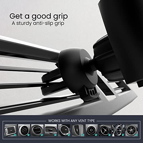 [STURDY GRIP] : A sturdy grip that is bump/ slip resistant. The mobile holder slides easily into the air conditioner vent of your car. It is designed to accommodate charging.