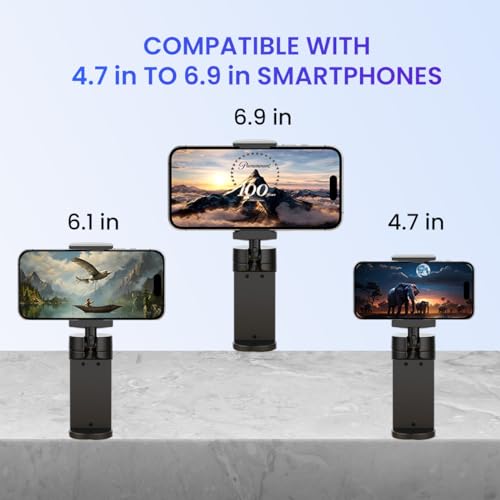 Wide Compatibility: Our phone holder can accommodate a wide range of smartphones, ranging from 4 inches to 6.4 inches. The base clip opens up to 1.77 inches (45mm), ensuring a fit for various setups like tables or other objects.