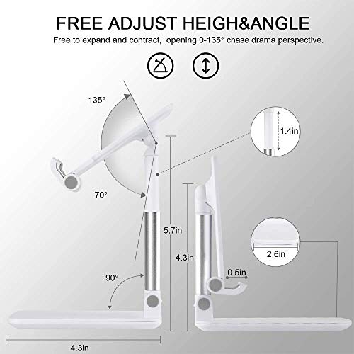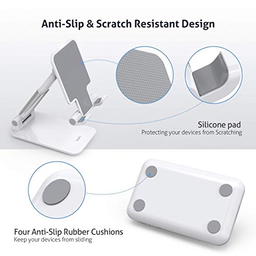About Folding phone Stand :: Our ipad stand for table Fully covered top silicone pads and metal weighted anti-slip base well protect your devices from scratches and sliding, easily tap the screen without worrying the phone will tip over or fall off. It’s Ideal ipad stand for online classes