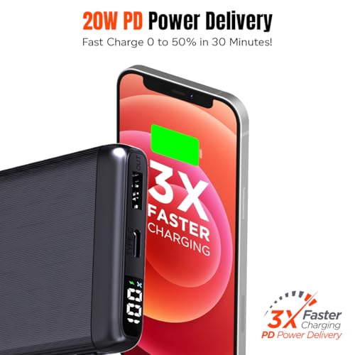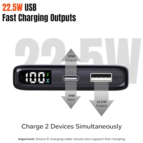 Portable & Slim Size for Easy Carry Around | PD (Power delivery), Quick Charge (QC) compatible | 2 Charging Outputs 1 x Type-C/PD & 1 x USB | 1 Charging Input Type-C/PD