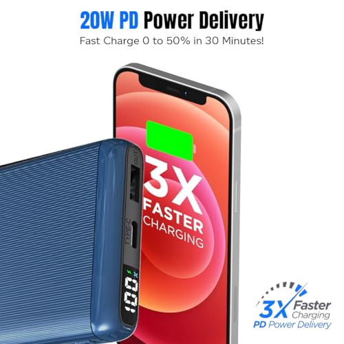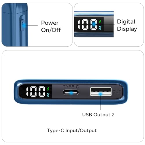 Portable & Slim Size for Easy Carry Around | PD (Power delivery), Quick Charge (QC) compatible | 2 Charging Outputs 1 x Type-C/PD & 1 x USB | 1 Charging Input Type-C/PD