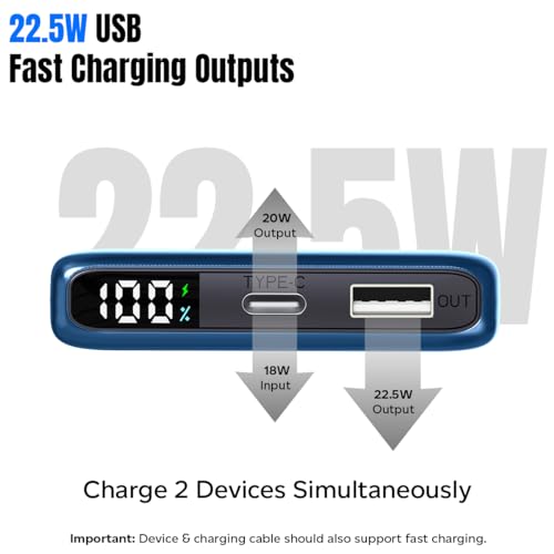 Dynamo Vortex Powerbank supports fast wired charging through USB (22.5W) & Type-C/PD ports (20W) | You can Charge 2 Devices Simultaneously | Multiple layers of advanced protection in the Chipset