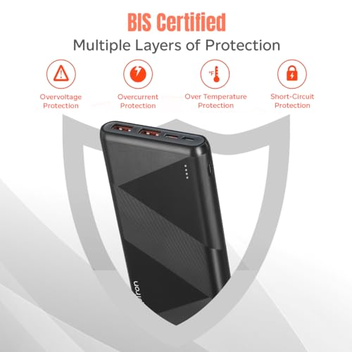 BIS certified | Advanced Layers of chip protection – Short circuit, Over temperature, Over-voltage protection | Lightweight ABS casing with LED battery % indicator
