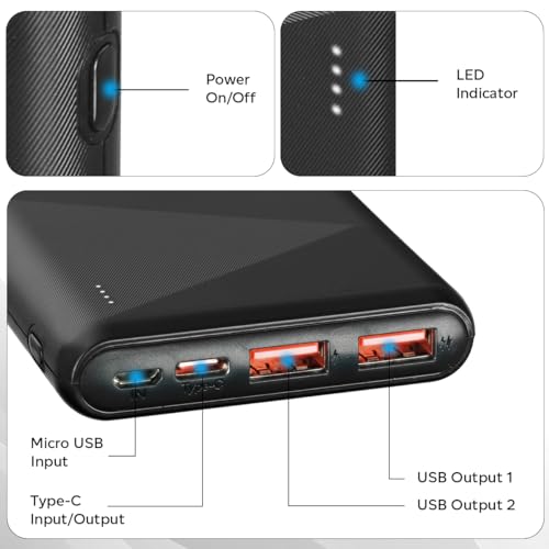 PD (power delivery), Quick Charge (QC) compatible | 3 Charging Outputs 1*Type-C/PD & 2*USB | 2 Charging Inputs – Micro USB & Type-C/PD