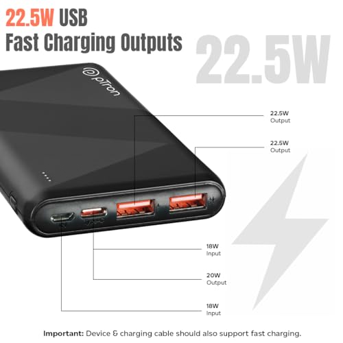 Power bank supports fast wired charging thru USB (22.5W) & Type-C/PD ports (20W) | Pass Through charging function (power bank charging & device charging simultaneously)