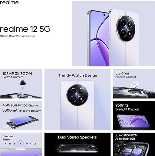 ☆【Speaker】:- Dual Stereo Speakers, Immerse yourself in a world of audio excellence with realme 12 5G’s Dual Stereo Speakers. Hi-Res Audio certification ensures lifelike sound while industry-leading specs deliver clear, loud audio. The built-in stereo effects and Ultra-Volume Mode, boosting volume to 200%, enhance your auditory experience.