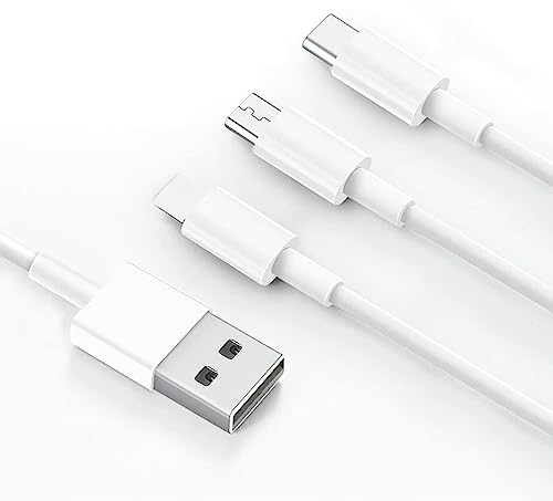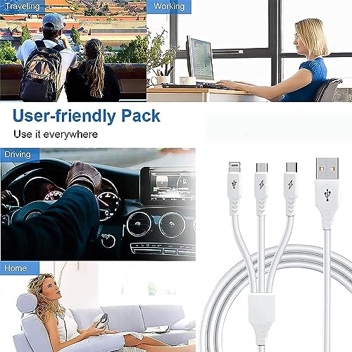 【Portable and Convenient】 The 3 way charger cord is 1.2m long, which makes it suitable for many applications, such as, put this cable in your car so your passengers can charge their phones; Lie on the sofa or bed and play with the phone while charging the phones; Share it with your family when you are watching th TV and so on. One cable is enough when you are traveling.