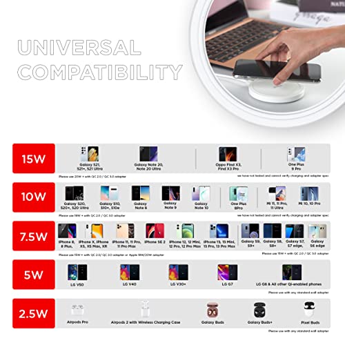 Compatible with AirPods Pro, iPhone 8 and up, Samsung Galaxy S7 and up, Samsung Galaxy Note 5 and up and any other Qi-compatible phone