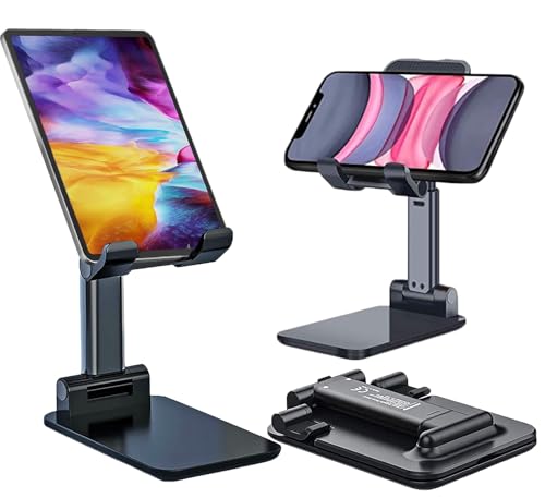 【Portable & Foldable】 – All 4-12.9″ Smartphones, tablets and e-readers can be placed on the phone stand firmly, compatible with Oppo, Vivo, Redmi, Xiaomi, Samsung, ipad, Kindle and more, so you can liberate your hands to enjoy Facetime calling with family or friend, to take a record in video conference, to snack while watching Youtube video etc.