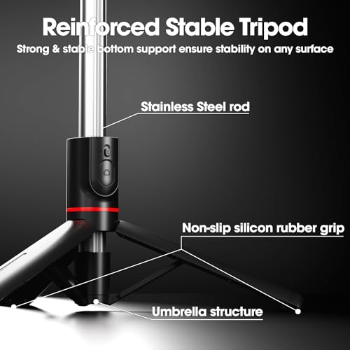 【360 Degree Rotatable】: The selfie stick tripod features a 360-degree rotatable head, enabling you to capture shots from various angles effortlessly, enhancing your vlogging and video recording experience.