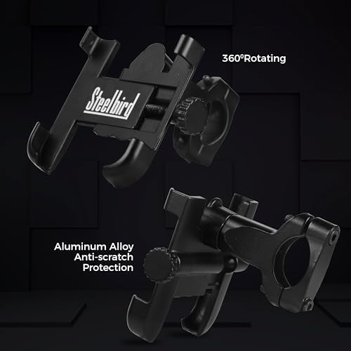 Steelbird Universal Bike Mount Phone Holder with 360 Degree Rotating Handlebar Cradle Stand for Bicycle, Motorcycle, Fits All Smartphones