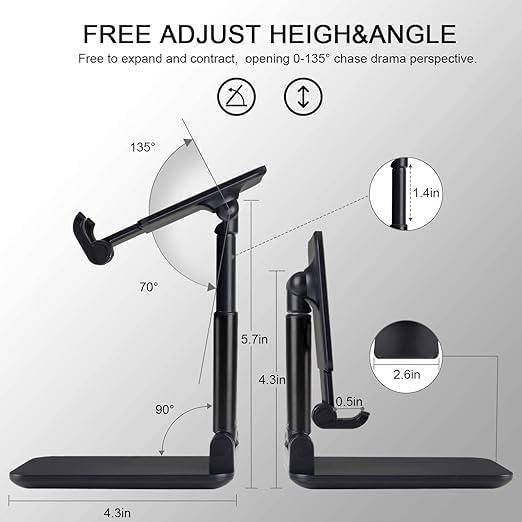 📱【Height & Angle Adjustable 】This desktop adjustable cell phone stand holder is in accordance with ergonomic design, The adjustable height(4.3in~5.7in ) & angle (0°~135°) could be adjusted to meet your different viewing demand. This phone holder providing you comfortable viewing angle which helps to fix your posture and reduce neck & back strain.This phone pad will not cover the subtitle when you watch video. Makes you hands-free to enjoy your games, videos and face-time.