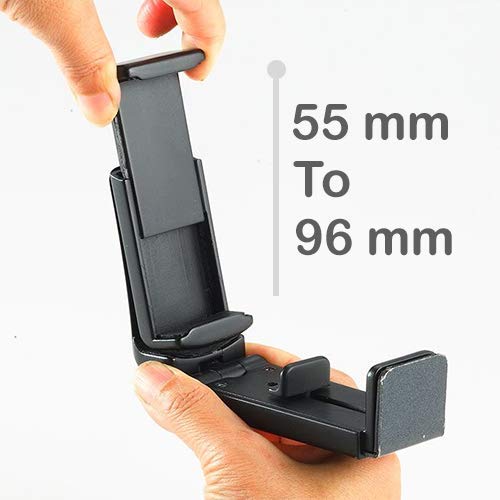 BUILD QUALITY : Made of high quality ABS Housing, Ferrite Iron for support & Rubberized grips in the holder securely hold your phone in any viewing position you like.The Holder arm expands from 55mm to 96mm so will fit most smartphones & Cameras. The Surface mounting clamp extends to 40mm